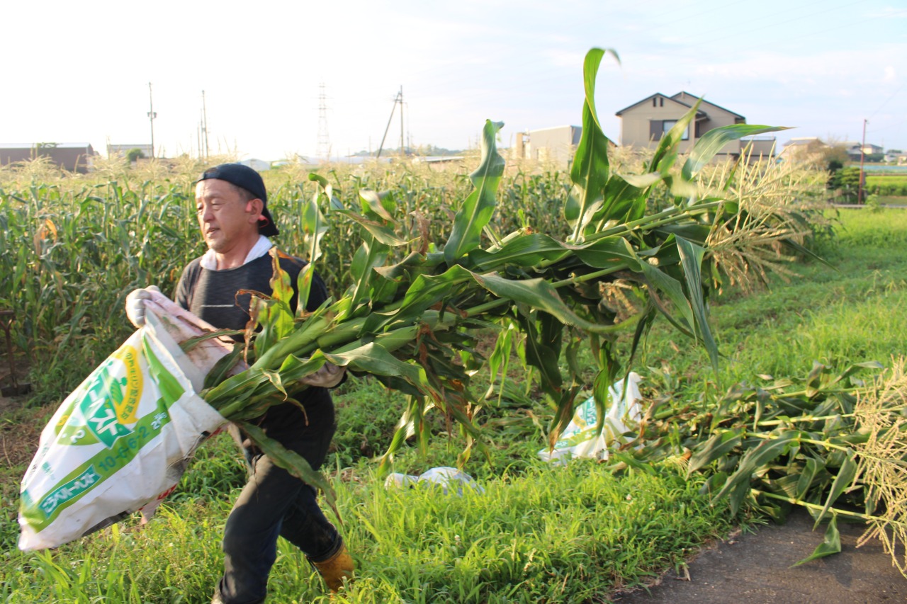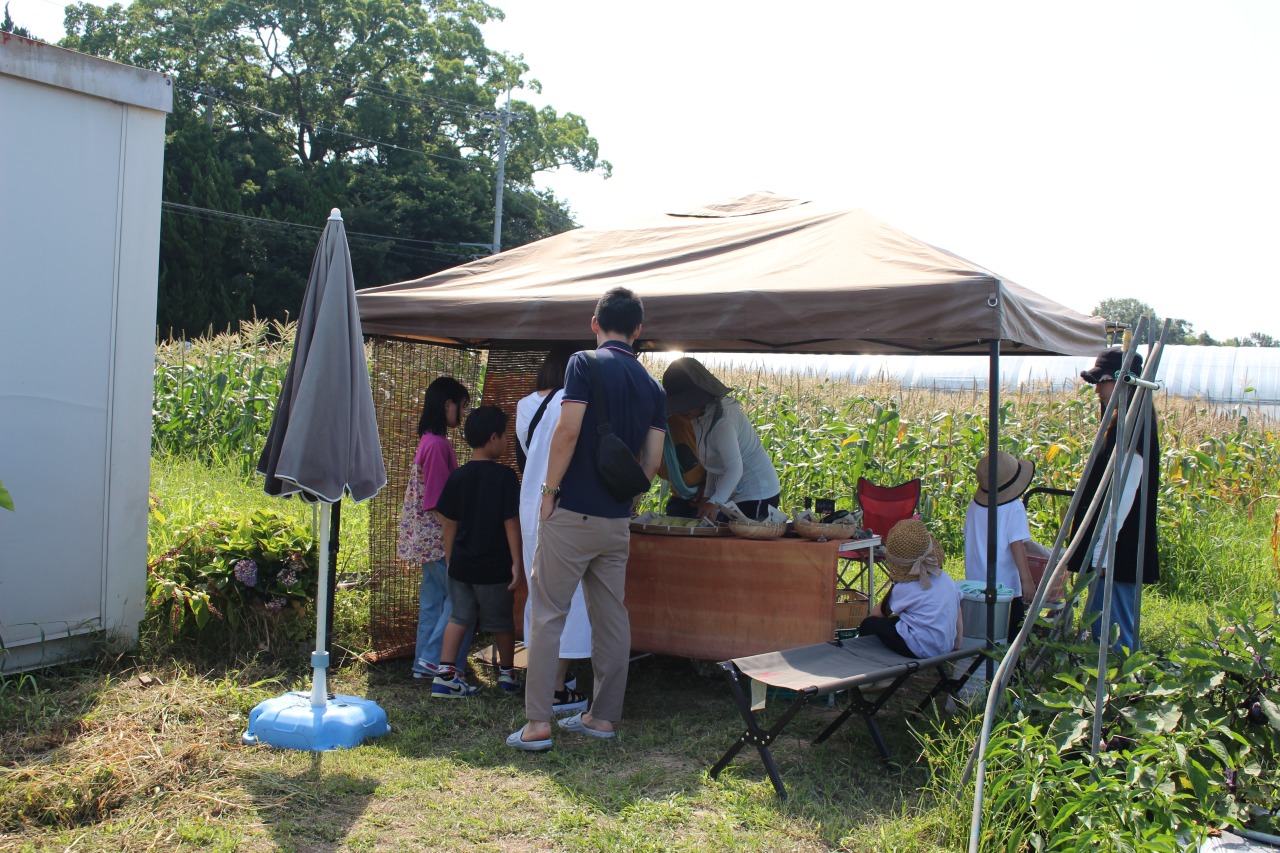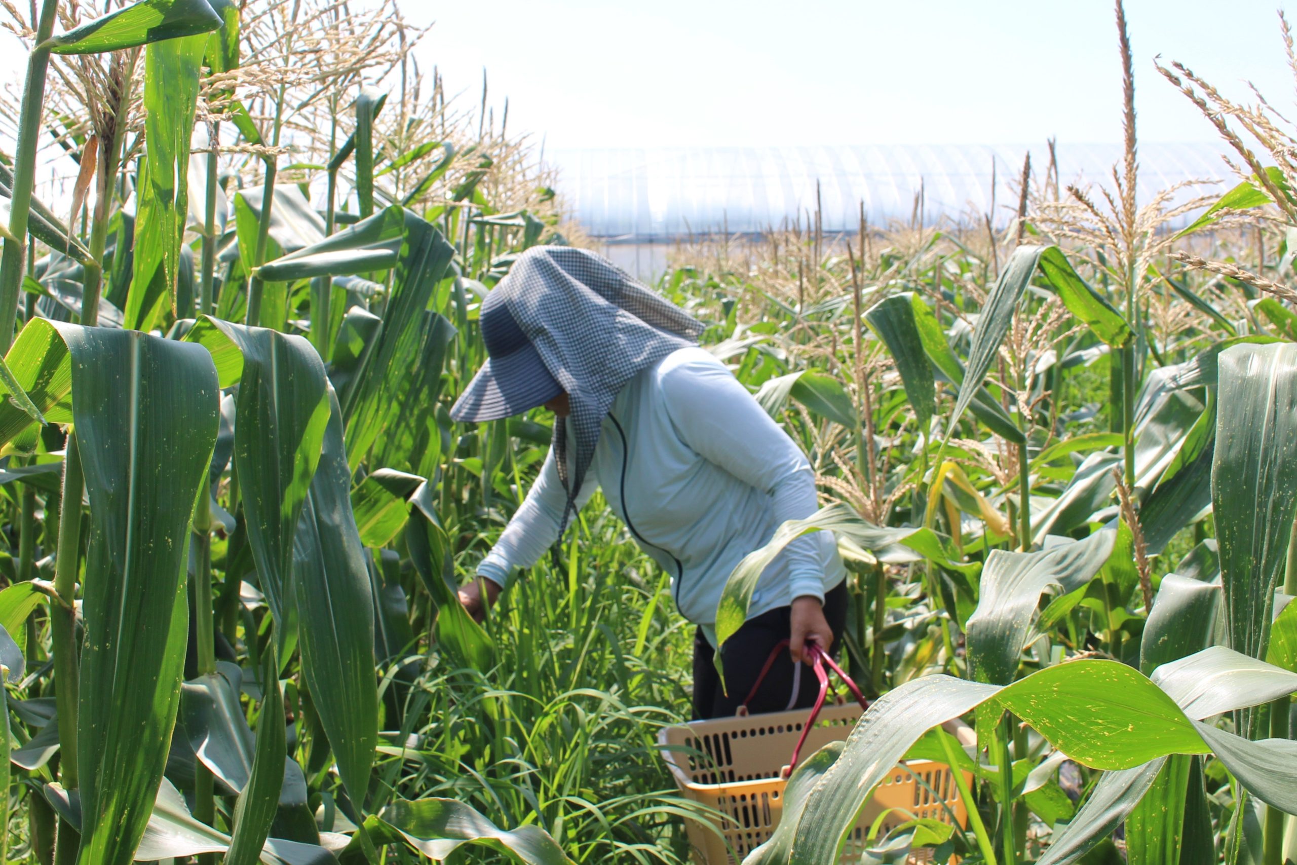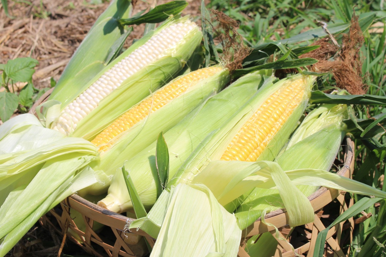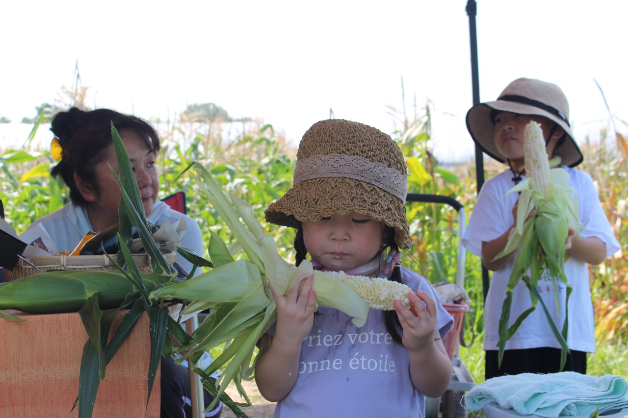 화농원 (華農園)에서는 갓 수확한 스위트콘을 밭에서 직접 판매하고 있습니다.