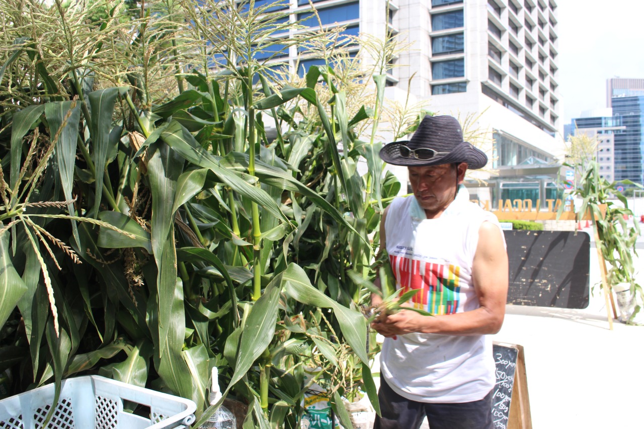 Moto Vegetable Farm에서는 밭이 없는 도심에서 스위트콘 줄기를 가져와 수확 체험을 즐길 수 있도록 아침 일찍부터 준비합니다.