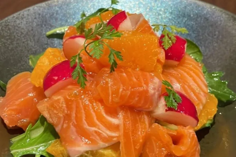 神戸元気サーモンは、体長よりも体高が大きくなる特徴を持ちます。これは身がしっかり詰まっている証で、頭が小さく、ずんぐりむっくりとした体型が特徴的。肉質は脂肪がしつこくなく、鮮度抜群で、歯ごたえのあるサーモンを楽しめます。