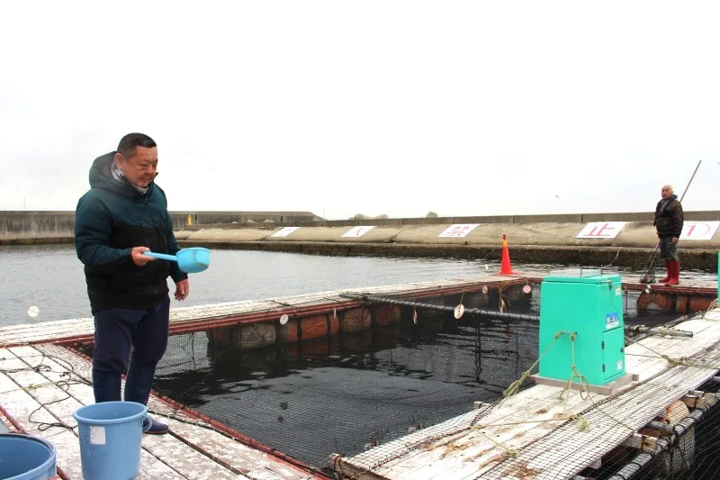 大量生産の施設と比べてコストが高いことが課題の中、餌にもこだわり、最近は浮上性の餌を導入。餌が流れていかないように周囲にシートを敷くことでロスを防ぐなど、試行錯誤を重ねながら、漁業を支えるための努力が続けられています。