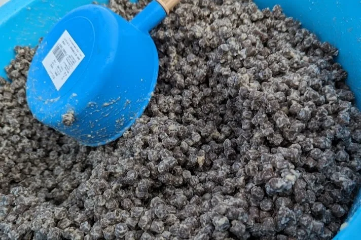 酒粕を使った特別な餌(神戸元気サーモンは、灘の日本酒「福寿」の酒粕を飼料に加える)